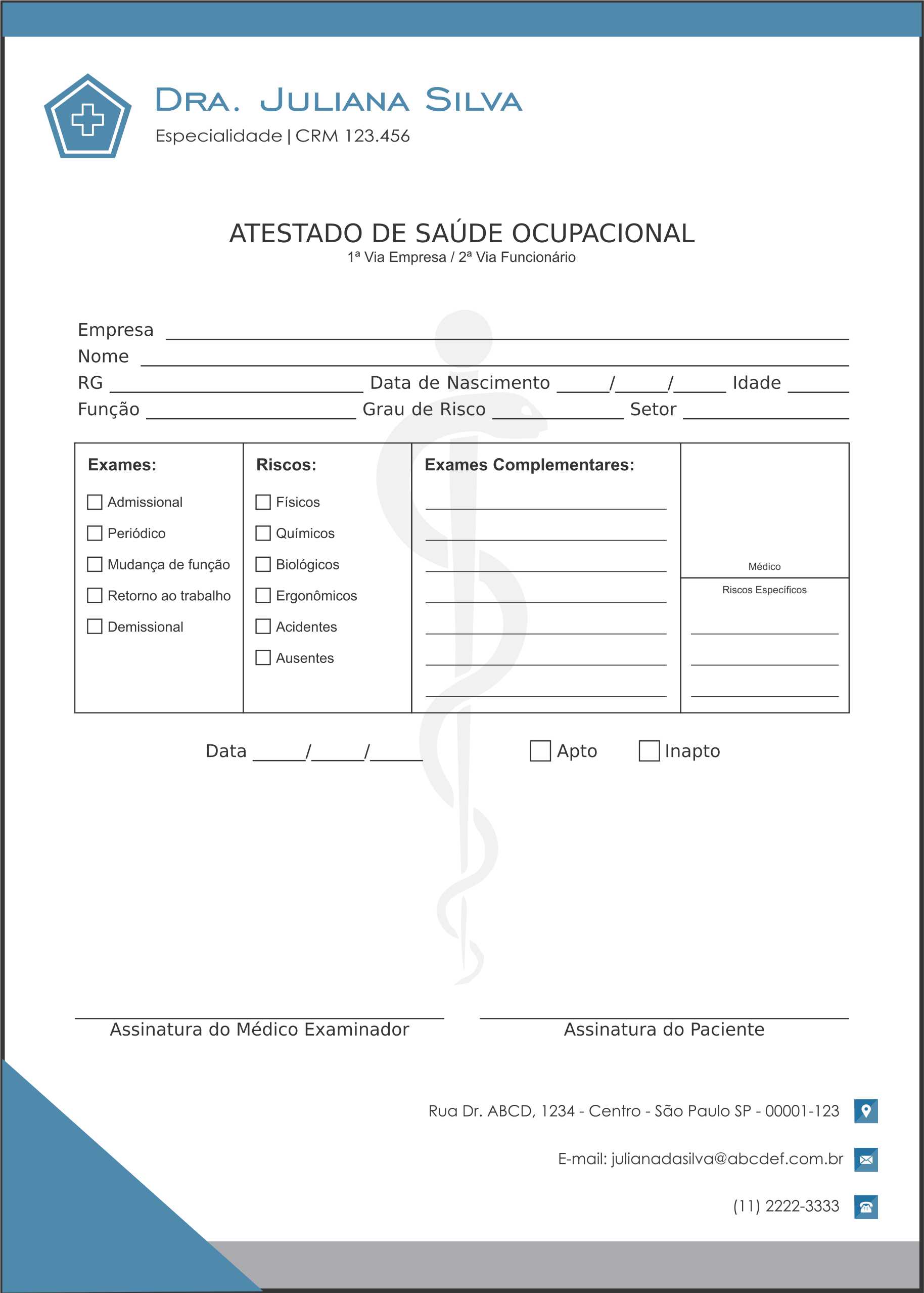 Bloco de ASO (Atestado de Saúde Ocupacional) em papel Autocopiativo com 50 folhas (25 atestados com 2vias);