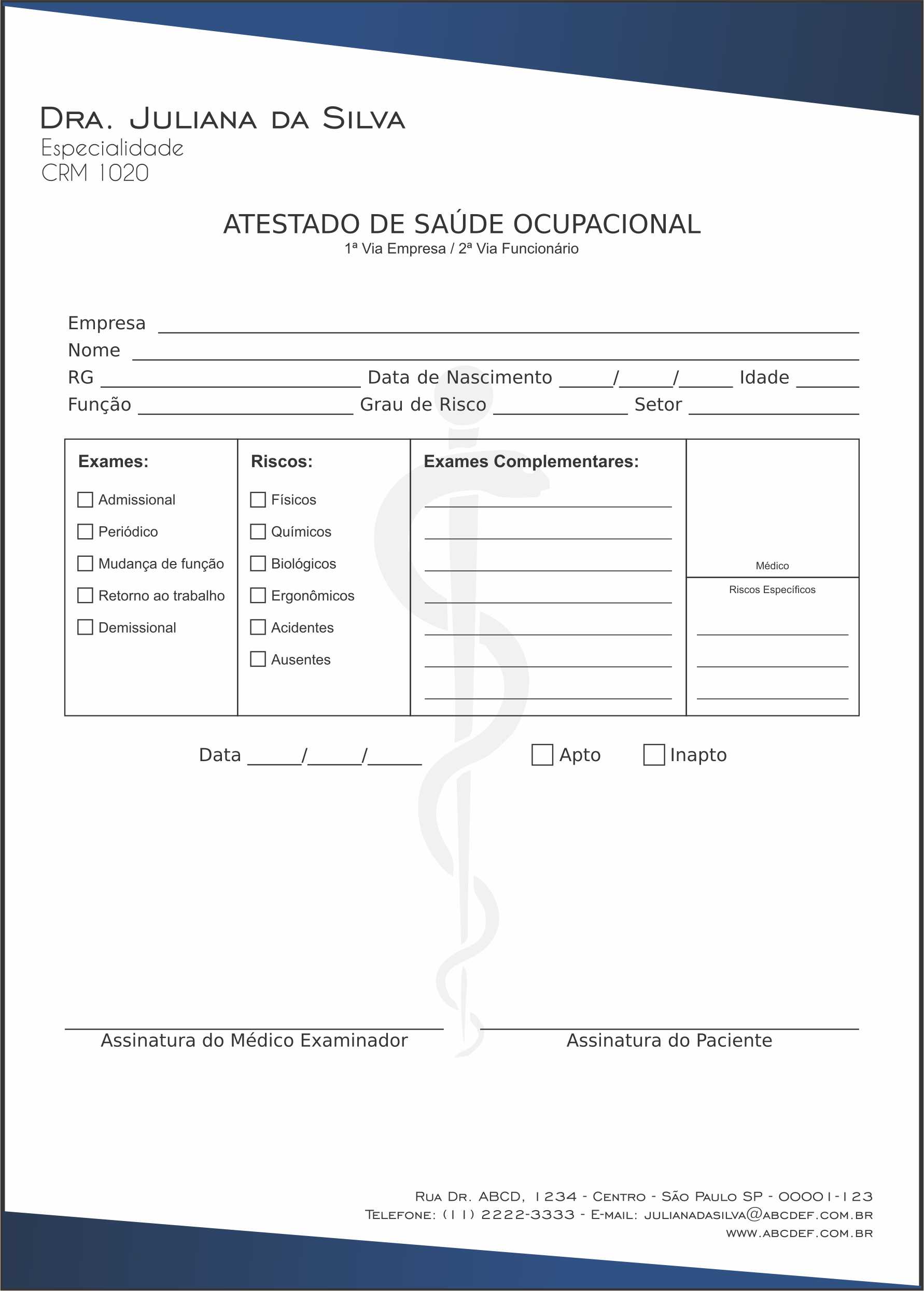 Bloco de ASO (Atestado de Saúde Ocupacional) em papel Autocopiativo com 50 folhas (25 atestados com 2vias);
