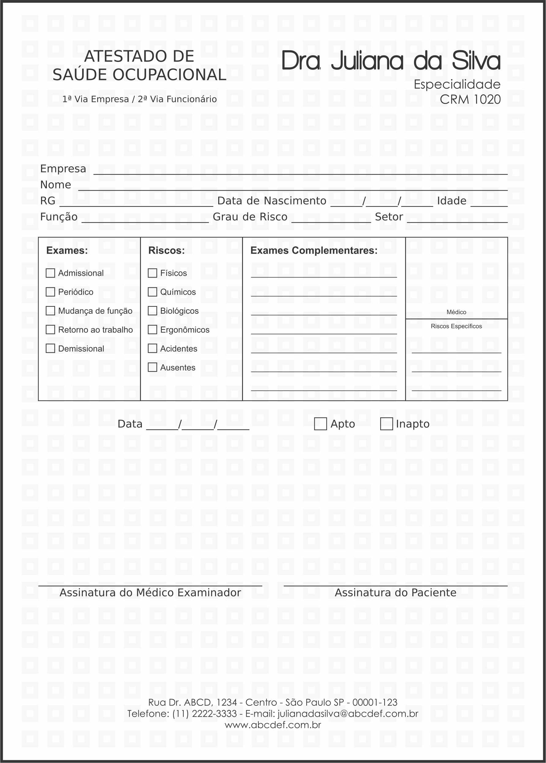 Bloco de ASO (Atestado de Saúde Ocupacional) em papel Autocopiativo com 50 folhas (25 atestados com 2vias);