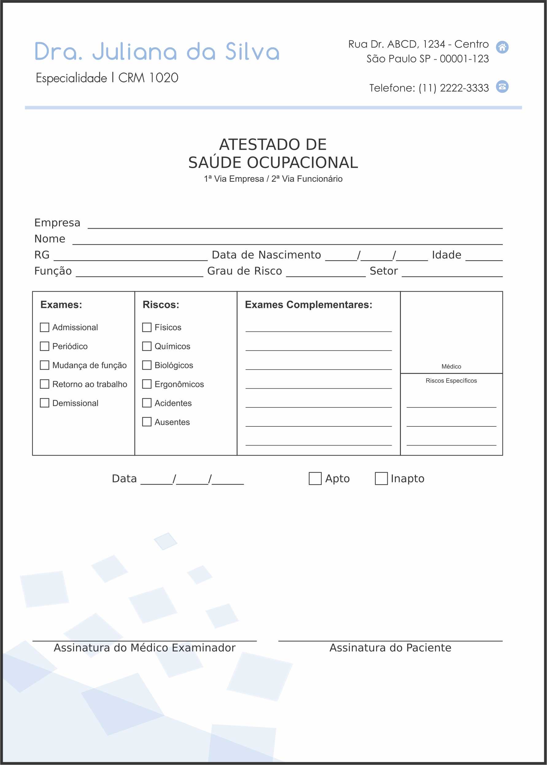 Bloco de ASO (Atestado de Saúde Ocupacional) em papel Autocopiativo com 50 folhas (25 atestados com 2vias);