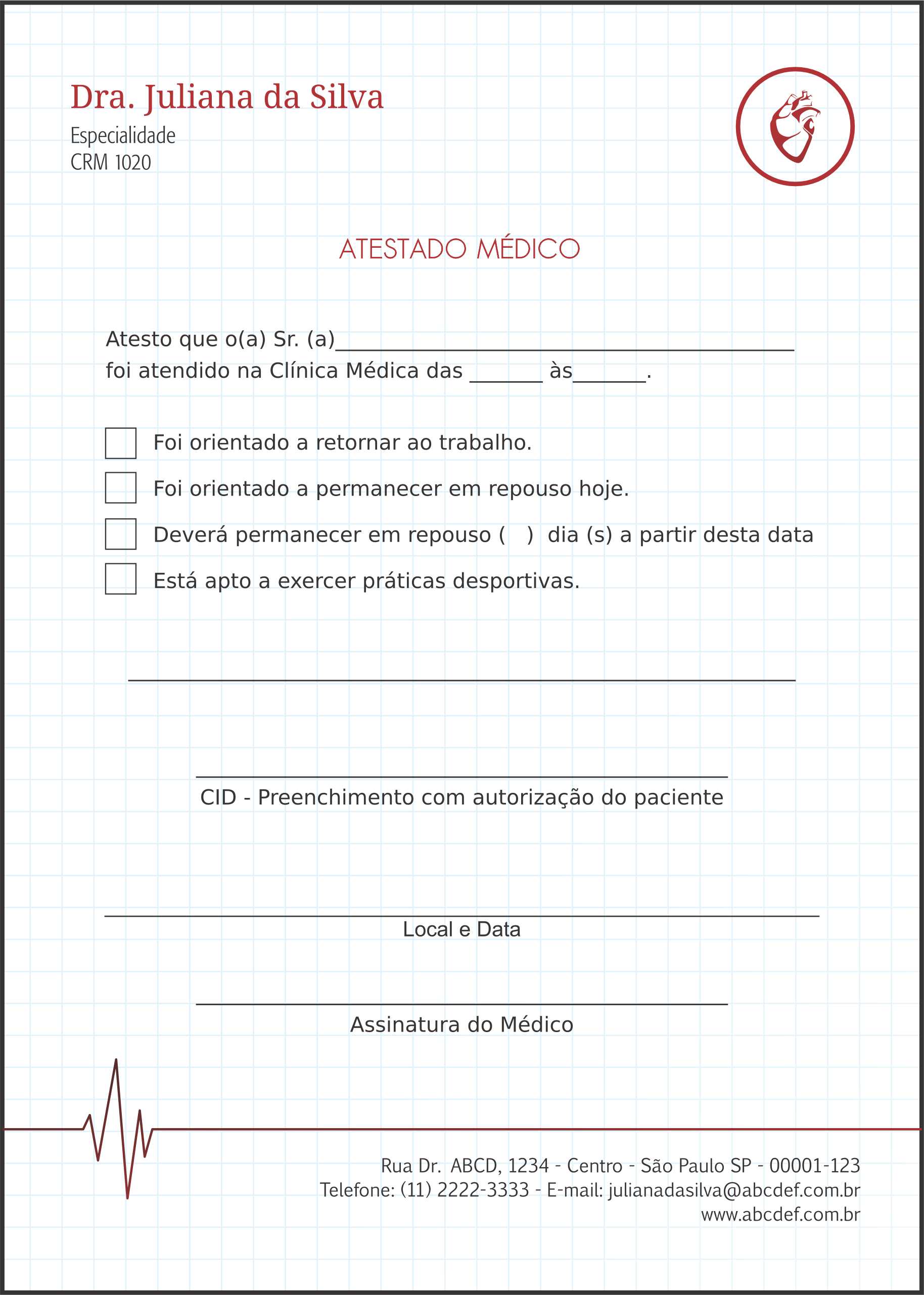 Na Papelaria Médica, personalizamos a arte do atestado sem custos adicionais, garantindo que cada profissional possa transmitir sua identidade e profissionalismo de forma única. Com tamanho de 15x21cm, este atestado é fácil de transportar e apresenta um layout que reflete cuidado e excelência na cardiologia.
