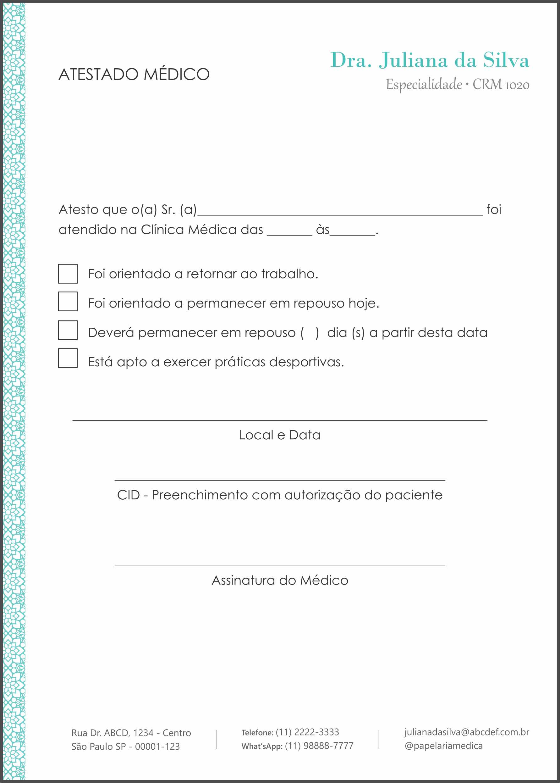 Apresentamos o Bloco de Atestado Clínica Geral Taba, projetado para trazer sofisticação e tranquilidade ao seu consultório. Com um design único que utiliza um azul claro, este bloco transmite uma sensação de serenidade, complementado por flores brancas desenhadas na faixa, adicionando um toque de delicadeza e elegância.