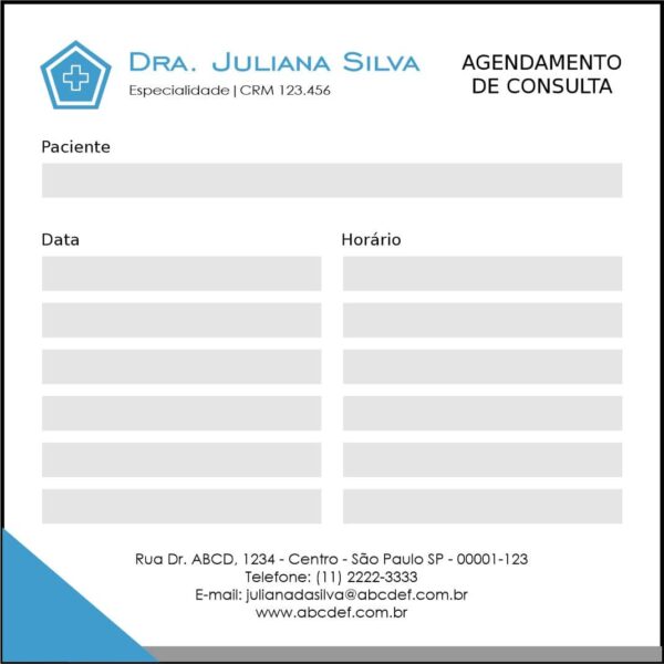 O Bloco de Agendamento de Consulta Clínica Geral Dahab é ideal para médicos, dentistas e outros profissionais da área da saúde que desejam manter um registro preciso das consultas agendadas.