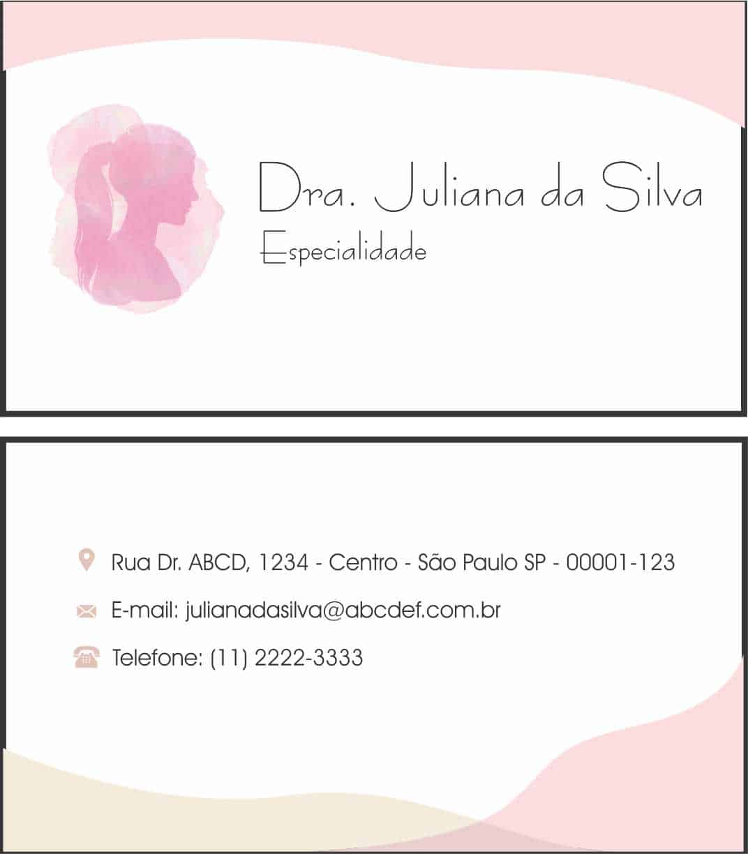 Com o desenho da silhueta suave de uma mulher, nosso Cartão de Visitas Dermatologista Bath destaca-se pela atenção aos cuidados com a beleza. As cores amarelo e rosa proporcionam uma harmonia visual que transmite delicadeza e profissionalismo.