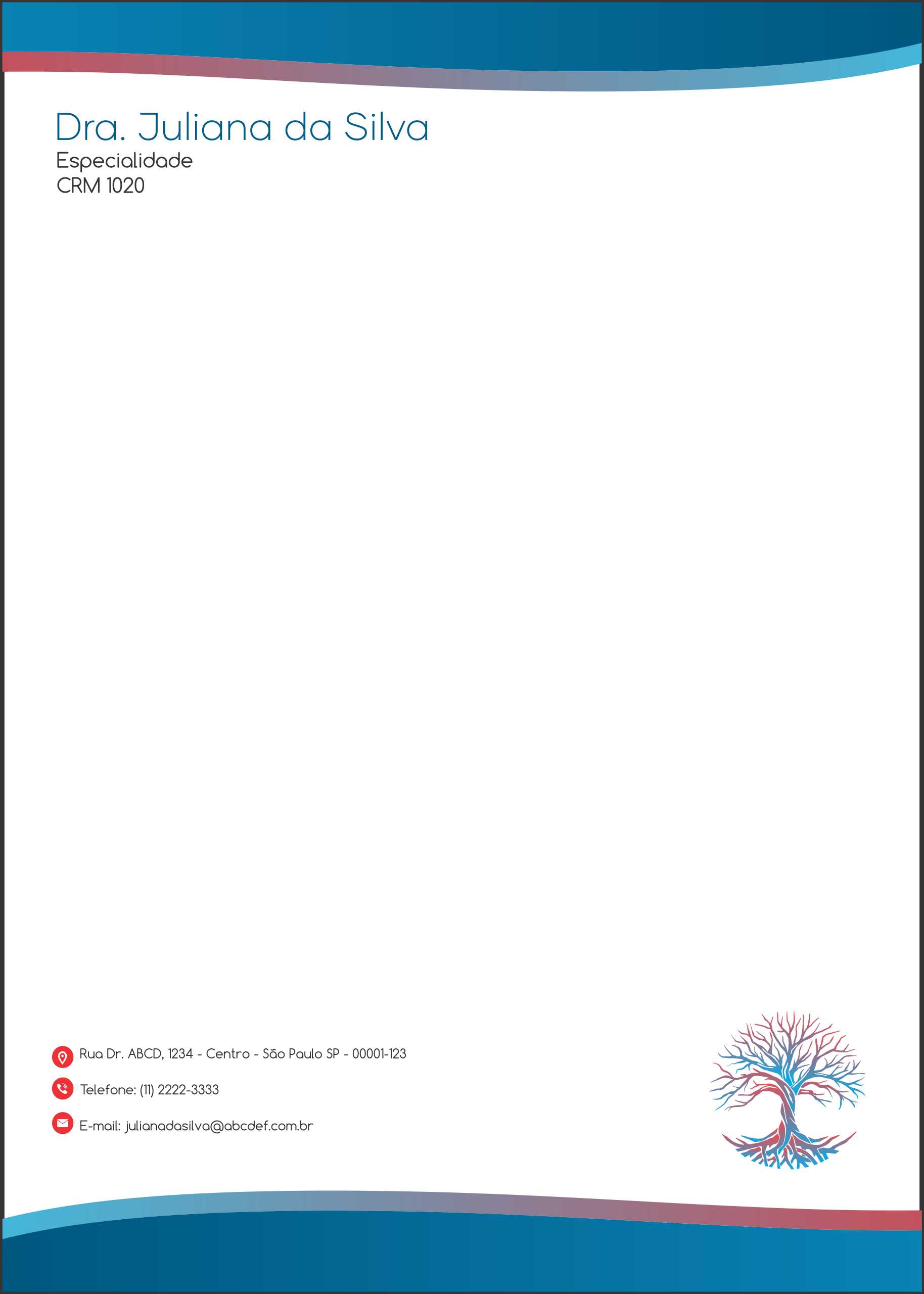 O logotipo de árvore em tons de azul e vermelho, inspirado no sistema circulatório, reforça a especialidade em angiologia e vascular, adicionando um toque de simbolismo à sua prescrição.