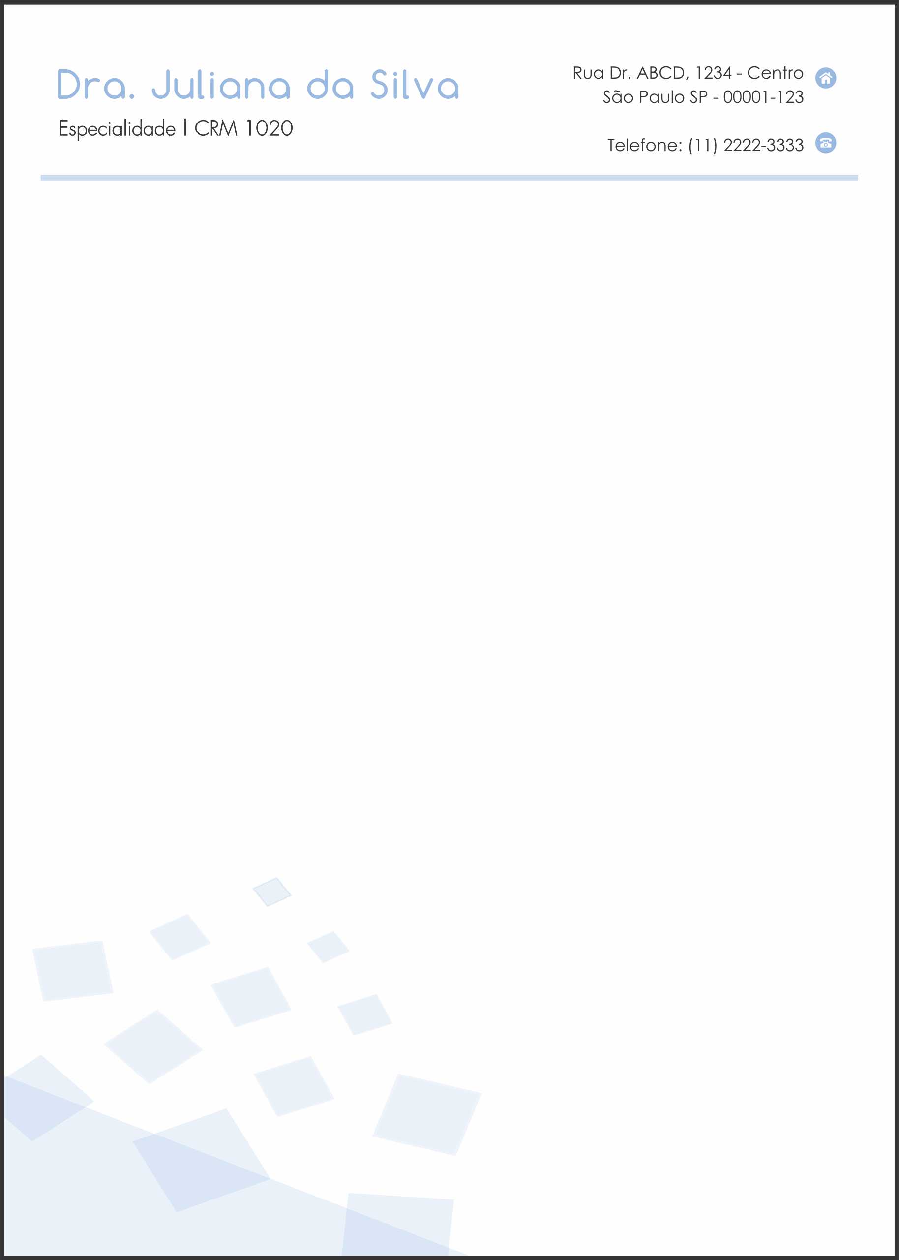 Com um design elegante e sofisticado, esse modelo possui formas quadriculares e triangulares como marca d’água na cor azul, conferindo serenidade e organização ao documento. Esses detalhes sutis agregam valor ao seu trabalho, transmitindo confiança aos pacientes.