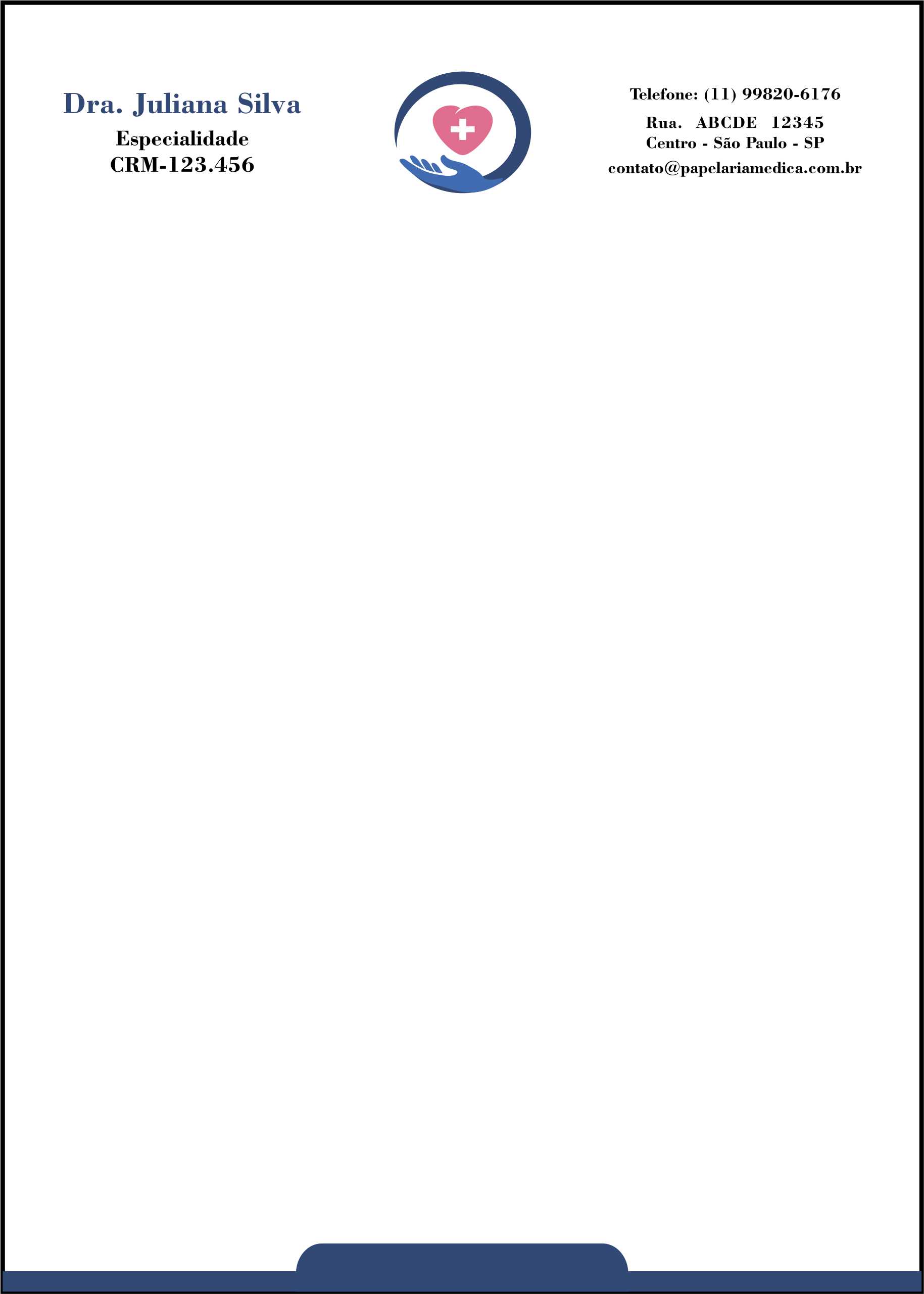 O tamanho de 15x21cm proporciona um espaço generoso para anotar prescrições e orientações importantes. Em tom azul pastel, o receituário transmite uma sensação de seriedade e organização. E o logotipo em formato de estetoscópio em forma de coração adiciona um toque de modernidade e dinamismo, simbolizando o amor pela saúde do coração.